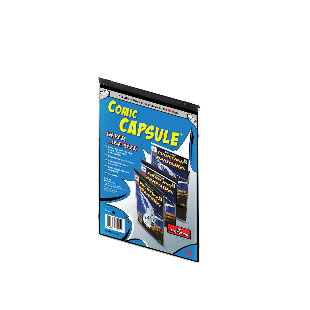 Our top-tier ComicCapsule, now with Silver Age Size and with a black back cover, the premier comic book protector designed to safeguard your prized collection with unparalleled precision. Crafted meticulously for durability, our ComicCapsule offers an impenetrable defense against dust, UV, and wear, ensuring your comics remain in pristine condition whether you choose to display or store your comics.